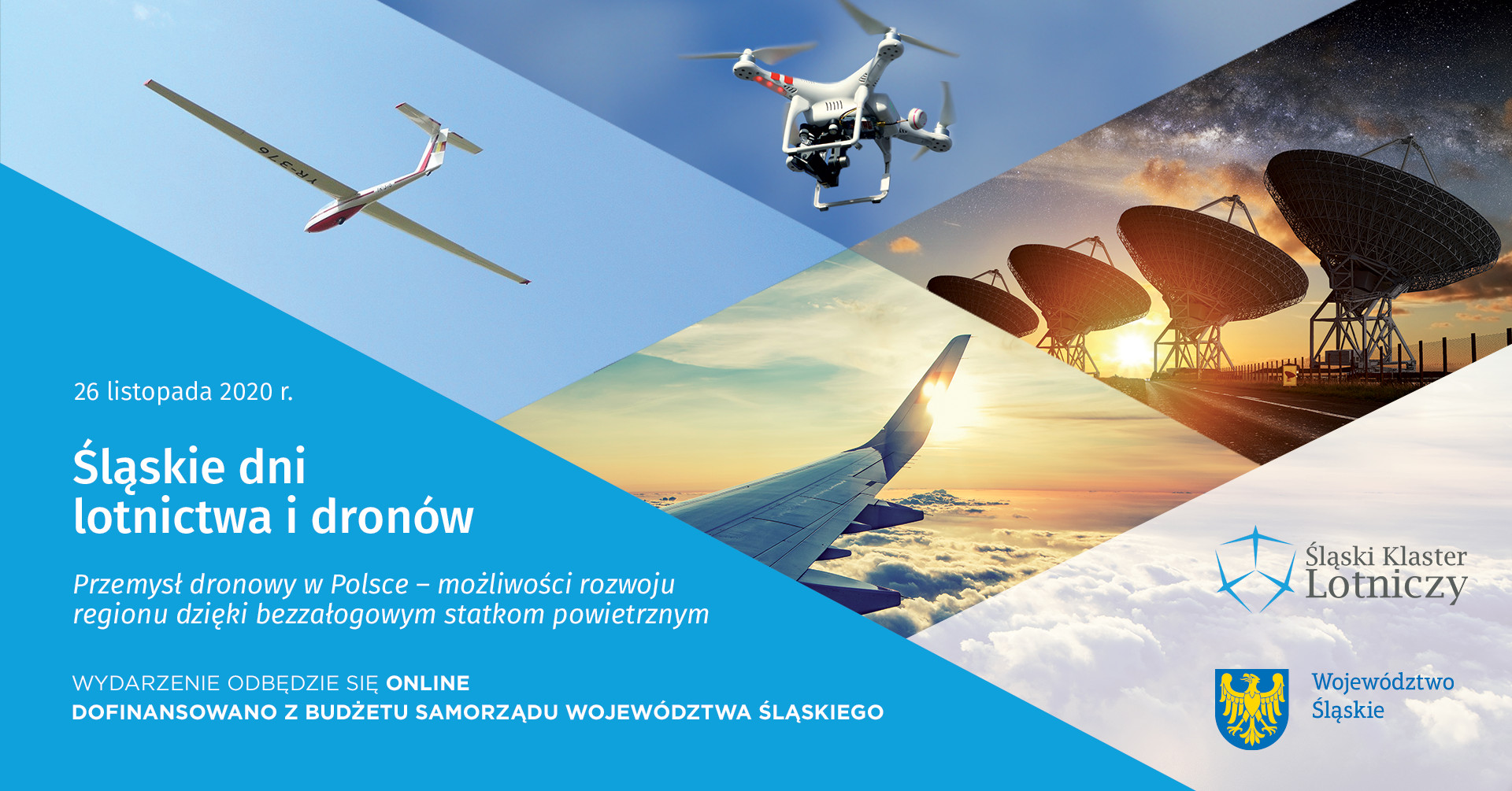 W imieniu Śląskiego Klastra Lotniczego, serdecznie zapraszamy do udziału w konferencji pn. „ŚLĄSKIE DNI LOTNICTWA I DRONÓW. Przemysł dronowy w Polsce – możliwości rozwoju regionu dzięki bezzałogowym statkom powietrznym”, która odbędzie się w dniu 26 listopada 2020r., ONLINE.